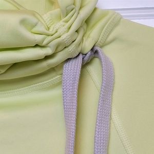 Great top for outdoor athletes (or fans :) from NIKE PRO! This is a difficult color to get just right in photos! But I would say it's a slightly greenish light yellow, maybe even neon yellow. Adjustable neck, thumbholes, lined with a super-soft lightweight fleece, "Dri-Fit," excellent condition. Size small.