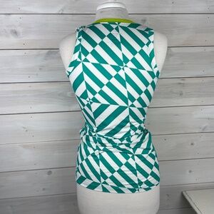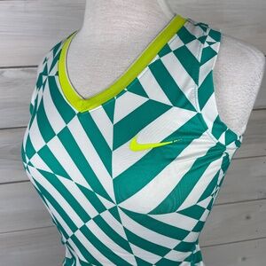 NIKE Pro Dri-fit green and white geometric stripe sleeveless athletic V-neck Top