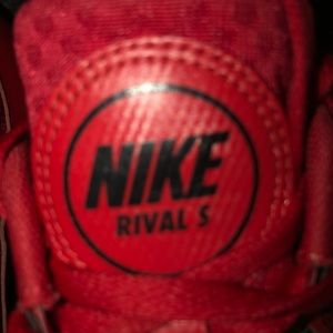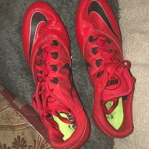 NIKE RED WITH BLACK SWOOPS RACING SHOE CLEETS FOR THE BEST TRACTION AND SUPERIOR PROFORMANCE,THESE NIKIES HUG YOUR FEET IN A SOFT WAY SO YOU CAN PREFORM AT HIGHEST LEVEL AND THERE GREAT LOOKING AS WELL,GOR A ALL AROUND ATHLETE THESE ARE THE RACING NIKIES.........$55