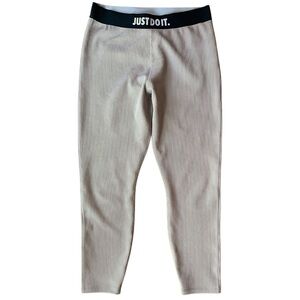 NIKE | RIBBED JUST DO IT LEGGINGS IN PUMICE LIKE NEW STRETCH WAISTBAND | LARGE