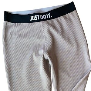 NIKE stretch ribbed leggings in the Pumice colorway featuring the Just Do It logo on an elasticized waistband