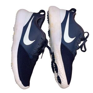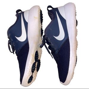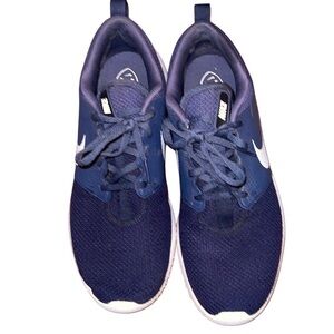 Stylish Nike sneakers. Navy blue with white accents. Comfortable and trendy. Size 9.5