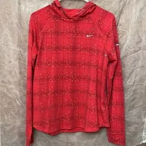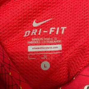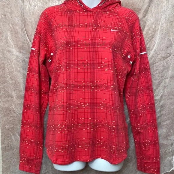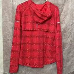 pink and yellow, air circulation pocket on back, reflective material on arms and back, zipper pocket on right back, fairly worn