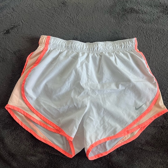 White Nike running shorts with coral/orange lining! So cute and in really good condition! Selling bc they don’t fit me anymore