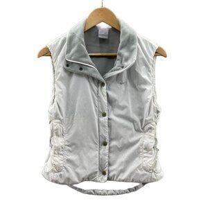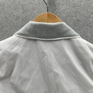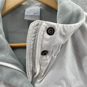 NIKE Running Vest Womens Small White Black Polka Dot Fleece Lined Pockets Cinch