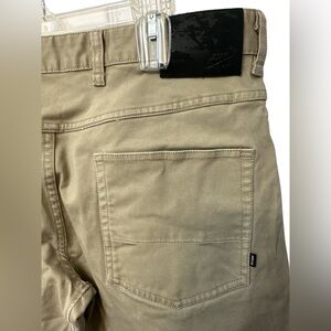 NIKE SB Skateboard Pants Mens Gusseted Beige Chino Zip Pockets Flex Canvas. Size 38. Side zip pockets.