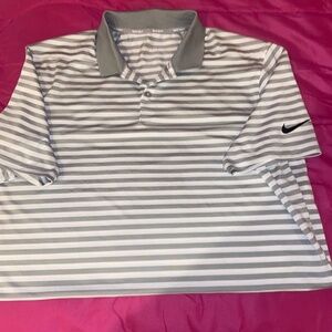 NIKE, polo shirt size M striped gray with white 100% polyester 56 cm from armpit to armpit 76 cm long DRI-FIT EXCELENTE CONDITION!!