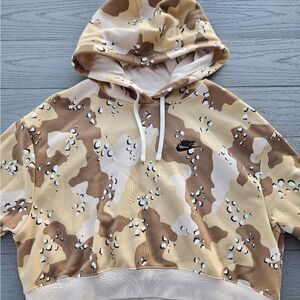 Nike Sportswear Club Fleece Cropped Brown Camo Hoodie