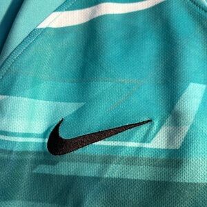Nike women’s Aqua Blue/Green soccer pullover goalie goalkeeper jersey.