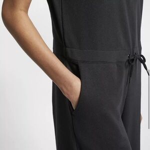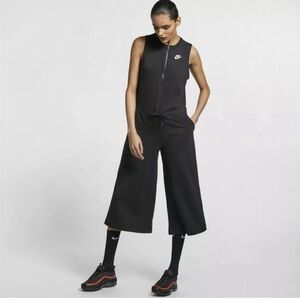 NIKE Sportswear Club French Terry Romper Jumpsuit Crop Gaucho Wide Leg Black S