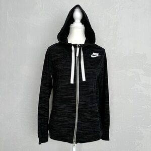 NIKE Sportswear Full Zip Hoodie M Heathered Space Dye Charcoal Tri Blend Casual