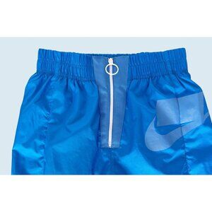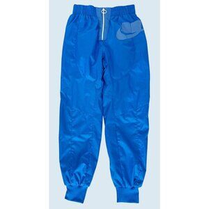 Great pair of pants by NIKE. Nice blue color. Pull on style with elastic waist. Swish / wind style fabric. Front exposed zipper with ring pull. Side seam pockets. Elastic cuffs. High waisted. 100% polyester. Size small. Pre-owned and gently worn in really nice condition!