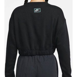 NIKE Womens Oversized Fleece Crop Sweatshirt, Black, Size: XS