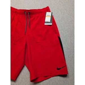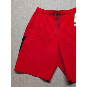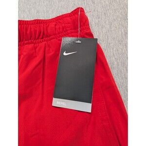 The product is a pair of NIKE Swim Mens Swim Trunks Shorts in red. These shorts feature a solid color design with a mesh lining for breathability and quick-drying capabilities. The trunks style swim bottoms are made of polyester material and have an elastic waist for a comfortable fit. They also come with built-in briefs, pockets, drawstring closure, and a key pocket, making them ideal for activities like water polo, lifeguarding, surfing, and recreational swimming. The Nike brand adds a sporty and colorful touch to the beach-themed design, making them a stylish and functional choice for any water enthusiast.