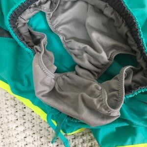 NIKE TEAL AND YELLOW GIRLS SIZE SMALL RUNNING SHORTS WITH PANTY LINING