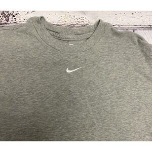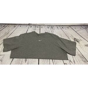 Elevate your activewear game with this Nike cropped t-shirt, perfect for any occasion. The relaxed fit and short sleeve design ensure comfort while the crew neck and medium fabric wash give it a classic look. The gray color and Nike product line make it a versatile addition to any wardrobe. This t-shirt is available in size medium and is a must-have for any woman's activewear collection. Preowned good condition.