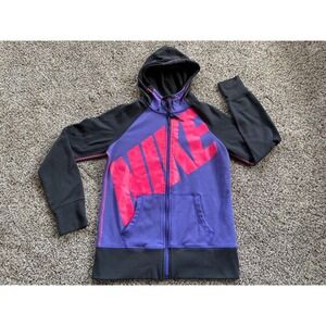 NIKE THERMA FIT - M/L - Hoodie Jacket SPELL OUT Full Zip Purple Black Pink B24