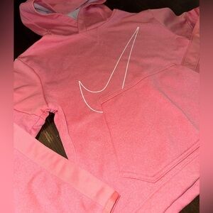 NIKE Therma Fleece Youth M Coral Orange Hoodie Sweatshirt Pockets Drawstring Hem. Like new condition. No stains and Great for Back to School. Smoke free home.