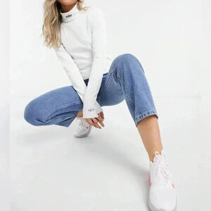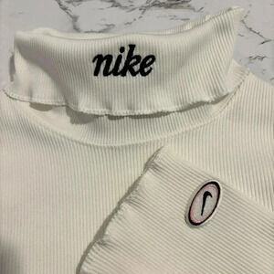 NIKE Turtleneck Ribbed Sweater Top in White, Size XS