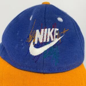 NIKE Vintage Style Kids Blue Yellow Embroidered Logo Hat with Stretch Fit