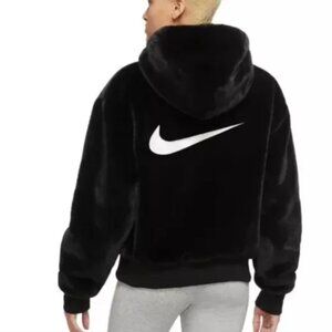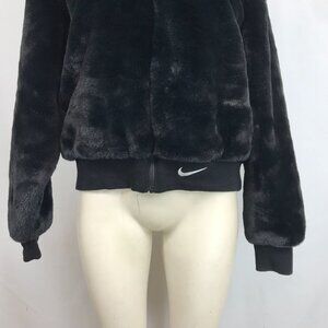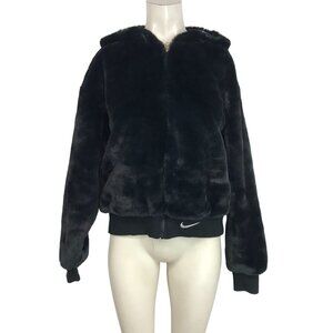 NIKE - WOMEN'S MEDIUM - BLACK FAUX FUR FULL ZIP HOODED BOMBER JACKET - DD5116