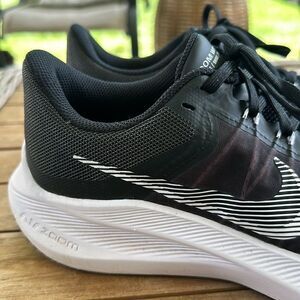 Secure support for fast, everyday training. When running is an everyday habit, you need support to match your speed. The Nike Winflo 8 brings back the cushioning you love and pairs it with details like a translucent upper and Flywire technology for a snug, stability fit for long runs. The upper uses translucent mesh and perforations at the forefoot for breathable comfort. The Flywire cables work with the laces to provide more support as you tighten them. A Zoom Air unit in the forefoot puts cushioning where you need it. Cushlon foam makes it soft and responsive and puts more springiness in your step. Foam around the heel and ankle combines with support at the base of the heel for a secure fit. Overlays at the toe add a layer of durability. The tongue is connected to the upper's inner lining for a secure feel.