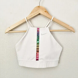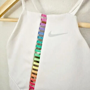 Adorable rainbow and white sport bra from NIKE! Size small, worn twice. Has removable pads in.