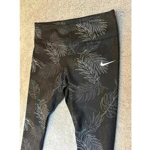 NIKE Women's Dri-Fit Mid-Rise 7/8 Leggings Black with Palm/Leaf Pattern - XL