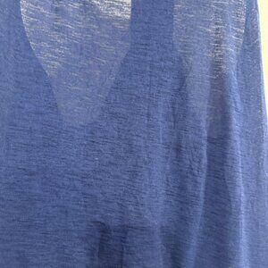 Nike racerback navy tank, loose and flowy with a slight sheer slub fabric. Has Nike logo at the bottom left hem and back has reflective dots going down the back. Perfect for all training, yoga and pilates, or simply for running errands!