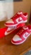 The popular Dunk Low in White with University Red layers. Leather upper, foam insole, padded collar, and rubber outsole. NWT, comes in original Nike box without lid.