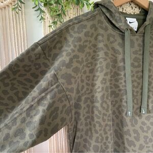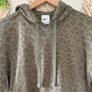 NIKE Women’s Get Fit Pullover Green Leopard Cropped Training Hoodie Size XS