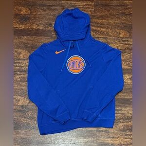The NIKE Women’s Knicks Sweatshirt in size Large is a stylish and comfortable pullover sweatshirt perfect for active women. Featuring a classic crew neck and long sleeves, this blue sweatshirt showcases the iconic Nike logo as accents. With a hood and pockets for added convenience, this sweatshirt is ideal for basketball or other sports activities in the winter, fall, or spring seasons. Made with machine washable material, this sweatshirt is easy to care for and a must-have addition to any woman's activewear collection.