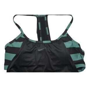 NIKE Women's Layered Statement Stripe Tankini Top Swimsuit in Green & Black