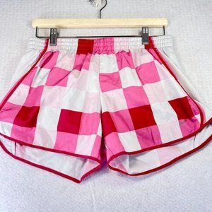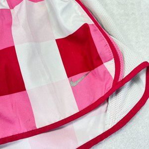 NIKE Womens M Dri Fit Checkered Pink White Performance Shorts Inner Drawstring