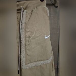 NIKE Women's Sportswear Essential Woven High-Waisted Curve Pants. Tan/cream. XS