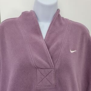 NIKE Women's Super Soft Shawl Collar Fleece Pullover Kangaroo Pocket Mauve Small