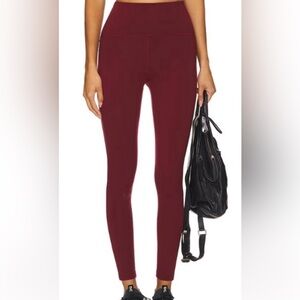 NIKE women’s high waist workout leggings in a gorgeous burgundy wine color. Butter smooth, high waist with wide waistband tummy control and Dri-Fit moisture wicking fabric. 7/8 ankle length.