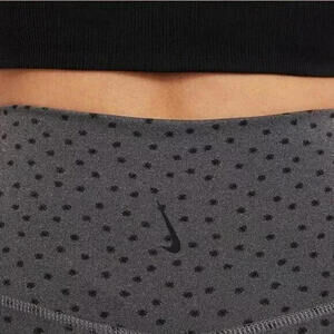 Take your active look up a notch with these Nike leggings, a sleek fit in a playful dot print. A high waist with an overlap detail lets you move in confidence.