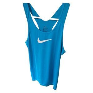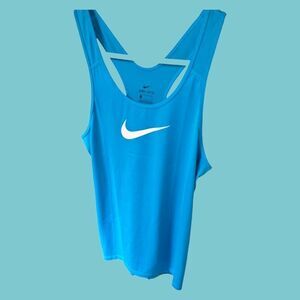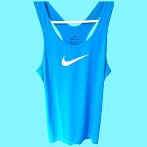 Women's Size Large Bust: 38" & Length: 28". All measurements are approximate and taken laying flat. The color of the top is Teal or Turquoise with a white NIKE SWOOSH On front.