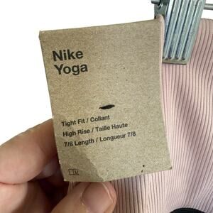 NIKE YOGA HI-WAIST 7/8 RIBBED-PANEL LEGGINGS Pink Black M Athleisure NWT