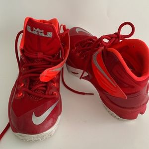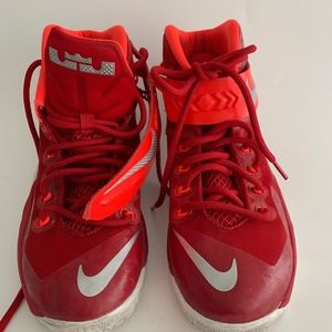 Men's Nike Zoom LeBron Soldier 8 Basketball Shoes Excellent condition. Normal scuff. Only worn on indoor courts. - Flexible forefoot mesh & dynamic. Flywire bundles provide natural comfort & lightweight, adaptive support. - Flexible mesh upper for breathability & a natural feel. Adjustable collar strap for customized support; Quick-release zipper for lockdown & ease of entry. Nike Zoom units in heel & forefoot for lightweight, super-responsive cushioning Rubber outsole.