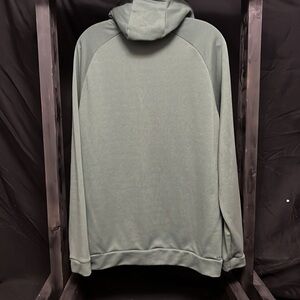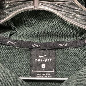 Size large. Dri fit. Army green with yellow swoosh on chest. Good condition. Some piling.