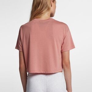 The Nike Essential Cropped Women's Short-Sleeve Top features soft fabric in a cropped profile for everyday comfort and easy layering.