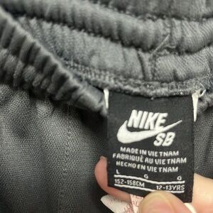 Size large. Gray polyester shorts. Elastic waist with drawstring. White stain on back left leg (shown in picture). Good used condition.