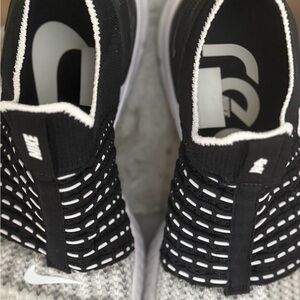 Women’s nike react slip on sneaker in size 8.5. The “Nike” sign on the tongue of one shoe is peeling. Worn minimal times. May need an additional wipe down.