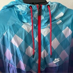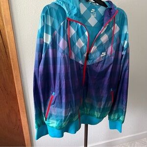 NIKE sz XL Gingham Windrunner Full Zip Windbreaker Jacket Blue Purple