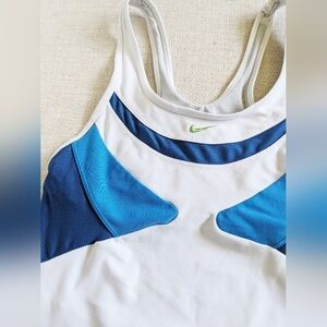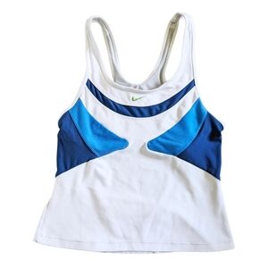 Nike women's racerback workout tank top. White with blue contrast. Built-in Bra. Size medium.