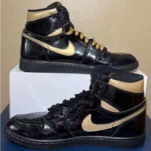 NIKE AIR JORDAN 1 RETRO OG PATENT LEATHER BLACK METALLIC GOLD
