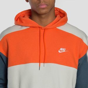 NIKE CLUB COLOURBLOCK DROP SHOULDER HOODIE IN ORANGE/LIGHT STONE