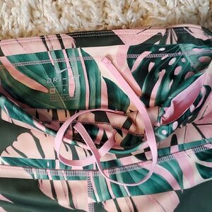 Back zippered pocket, drawstring and hidden credit card pocket on the inside.